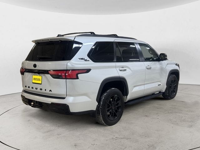 Pearl 2024 Toyota Sequoia Limited 4WD 10-Speed Automatic V6 Hybrid 3.31 Axle Ratio, 3rd row seats: split-bench, 4-Wheel Disc Brakes, 8 Speakers, ABS brakes, Air Conditioning, All-Weather Liners/Cargo Mat (TMS), Alloy wheels, AM/FM radio: SiriusXM, Anti-whiplash front head restraints, Apple CarPlay/Android Auto, Auto High-beam Headlights, Auto-dimming door mirrors, Auto-dimming Rear-View mirror, Automatic temperature control, Brake assist, Bumpers: body-color, Cast Aluminum Step & Step Cover, Connected Services Trial Offering (1Y) (TMS), Delay-off headlights, Door Edge Guard (TMS), Driver door bin, Driver vanity mirror, Dual front impact airbags, Dual front side impact airbags, Electronic Stability Control, Emergency communication system: Safety Connect (10-year trial), Exterior Parking Camera Rear, Front anti-roll bar, Front Bucket Seats, Front Center Armrest w/Storage, Front dual zone A/C, Front fog lights, Front reading lights, Front wheel independent suspension, Fully automatic headlights, Garage door transmitter: HomeLink, Headlight cleaning, Heated & Ventilated Front Seats, Heated door mirrors, Heated front seats, Heated steering wheel, Illuminated entry, JBL 14 Speakers, Knee airbag, Leather Shift Knob, Leather steering wheel, Low tire pressure warning, Memory seat, Multi-Terrain Back Monitor, Navigation system: Drive Connect (1 year trial) includes Cloud Navigation with real time traffic and Google POI, Occupant sensing airbag, Offroad Front Skid Plate, Outside temperature display, Overhead airbag, Overhead console, Panic alarm, Passenger door bin, Passenger vanity mirror, Power door mirrors, Power driver seat, Power Liftgate, Power moonroof, Power passenger seat, Power steering, Power windows, Radio: Toyota Multimedia w/14" Display, Rear air conditioning, Rear reading lights, Rear seat center armrest, Rear window defroster, Rear window wiper, Reclining 3rd row seat, Remote keyless entry, Roof Cross Bars (TMS), Security system, SofTex Seat Trim, Speed control