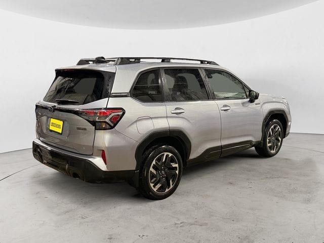 Ice Silver Metallic 2025 Subaru Forester Hybrid Premium AWD Lineartronic CVT 2.5L 4-Cylinder DOHC 16V 4-Wheel Disc Brakes, 6 Speakers, ABS brakes, Air Conditioning, Alloy wheels, AM/FM radio: SiriusXM with 360L, Anti-whiplash front head restraints, Auto High-beam Headlights, Automatic temperature control, Brake assist, Bumpers: body-color, Cargo Tray, Compass, Door Projector Lights, Driver door bin, Driver vanity mirror, Dual front impact airbags, Dual front side impact airbags, Electronic Stability Control, Emergency communication system: MySubaru Safety (3-year free trial), Exterior Parking Camera Rear, Four wheel independent suspension, Front anti-roll bar, Front Bucket Seats, Front Center Armrest, Front dual zone A/C, Front fog lights, Front reading lights, Fully automatic headlights, Heated door mirrors, Heated Front Bucket Seats, Heated front seats, Illuminated entry, Knee airbag, LED Upgrade, Low tire pressure warning, Navigation system: TomTom Navigation w/what3words, Occupant sensing airbag, Outside temperature display, Overhead airbag, Overhead console, Panic alarm, Passenger door bin, Passenger vanity mirror, Power door mirrors, Power driver seat, Power Liftgate, Power moonroof: Panoramic, Power steering, Power windows, Premium Cloth Upholstery, Radio data system, Radio: Subaru 11.6" Multimedia Navigation System, Rear anti-roll bar, Rear seat center armrest, Rear window defroster, Rear window wiper, Remote keyless entry, Security system, Speed control, Speed-sensing steering, Splash Guards, Split folding rear seat, Spoiler, Standard Model, Steering wheel mounted audio controls, Sunshade - 2nd Row, Tachometer, Telescoping steering wheel, Tilt steering wheel, Traction control, Trip computer, Variably intermittent wipers, Wheels: 18" x 7.0 J Dark Metallic Aluminum-Alloy.