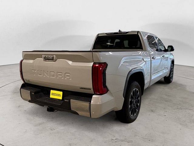 Pearl 2025 Toyota Tundra Hybrid Limited 4WD 10-Speed Automatic 3.4L V6 20" x 8" Alloy Wheels, 3.31 Axle Ratio, 4-Wheel Disc Brakes, 9 Speakers, ABS brakes, Air Conditioning, All Weather Floor Liners (TMS), Alloy wheels, AM/FM radio: SiriusXM, Apple CarPlay/Android Auto, Auto High-beam Headlights, Auto-dimming door mirrors, Auto-dimming Rear-View mirror, Automatic temperature control, Brake assist, Bumpers: body-color, Delay-off headlights, Driver door bin, Driver vanity mirror, Dual front impact airbags, Dual front side impact airbags, Electronic Stability Control, Emergency communication system: Safety Connect (10-year trial), Exterior Parking Camera Rear, Front anti-roll bar, Front Bucket Seats, Front Center Armrest, Front dual zone A/C, Front fog lights, Front reading lights, Front wheel independent suspension, Fully automatic headlights, Garage door transmitter: HomeLink, Heated & Ventilated Front Bucket Seats, Heated door mirrors, Heated front seats, Heated steering wheel, Illuminated entry, Knee airbag, Leather Shift Knob, Leather steering wheel, Low tire pressure warning, Memory seat, Navigation System, Occupant sensing airbag, Outside temperature display, Overhead airbag, Overhead console, Panic alarm, Passenger door bin, Passenger vanity mirror, Power door mirrors, Power driver seat, Power passenger seat, Power steering, Power windows, Radio data system, Radio: Audio Plus, Rear reading lights, Rear seat center armrest, Rear step bumper, Rear window defroster, Remote keyless entry, Security system, SofTex Seat Trim, Speed control, Speed-sensing steering, Split folding rear seat, Steering wheel mounted audio controls, Tachometer, Telescoping steering wheel, Tilt steering wheel, Traction control, Trip computer, Turn signal indicator mirrors, Variably intermittent wipers, Ventilated front seats, Voltmeter.